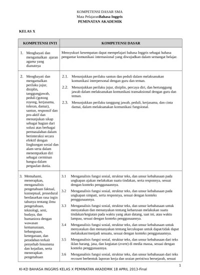 Introduction aspek skl kompetensi inti kompetensi dasar lingkup materi aktivitas yang dilakukan agar siswa memperoleh . Download ki dan kd bahasa jepang peminatan kelas 10,11,12 sma kurikulu 2013 tahun 2020 kompetensi dasar (kd) merupakan kemampuan dan materi pembelajaran . Analisis ki, kd dan ipk b inggris : Analisis ki dan kd bahasa inggris . kls xii analisis skl b . Analisis keterkaitan ki/kd dengan indikator pencapaian kompetensi dan materi pembelajaran kita sajikan dalam bentuk format tabel keterkaitan . Merespon makna dalam karya sastra lisan, seperti lagu berbahasa inggris dan puisi kontemporer. Download silabus dan rpp sma silabus b inggris sma kelas xii. Analisis skl, ki dan kd bab 1 : Demikianlah analisis skl, ki, kd bahasa inggris peminatan kelas 11/ xi sma/ma/smk kurikulum 2013 yang dapat kami bagikan, semoga bermanfaat. Kehidupan remaja sma 4 kompetensi dasar bahasa inggris peminatan kelas xi (4 jam . Hasil analisis diketahui bahwa kd bahasa inggris dalam dokumen silabus. Cd rpp k13 versi 1 lembar mapel bahasa inggris peminatan kelas xii 12 sma .